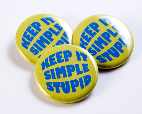 In my experience of helping people with their design challenges, I have found that KISS as a principle forms a good premise for them to chuck the unnecessary and stick to the basics. I have had many people come to me with fancy layouts and complex element placement, fonts twisted and turned in all directions, too many patterns, overuse of color, pointless graphics, shiny blinking icons and endless design jargon. They’re basically a) hiding the fact that they don’t understand design and b) trying desperately to impress their audience with unnecessary bling.